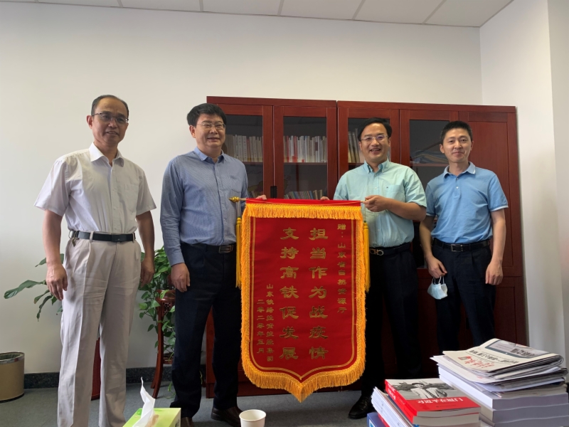 6月9日,集團(tuán)副總經(jīng)理唐傳營(yíng)帶隊(duì)向省自然資源廳贈(zèng)送了“擔(dān)當(dāng)作為戰(zhàn)疫情,支持高鐵促發(fā)展”的錦旗,感謝省自然資源廳在疫情期間對(duì)萊榮鐵路、濰煙鐵路用地預(yù)審等工作給予的大力支持。