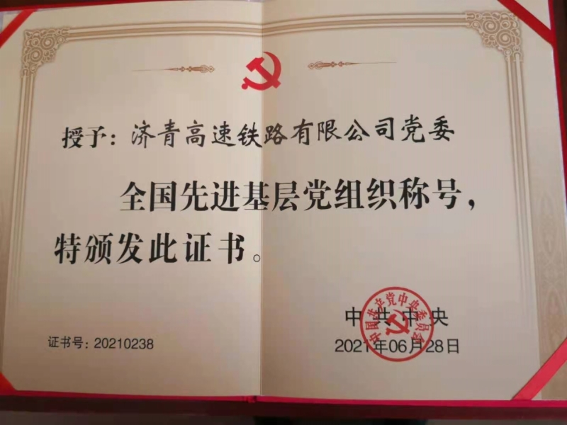 6月28日,全國“兩優(yōu)一先”表彰大會在北京人民大會堂舉行。濟(jì)青高速鐵路有限公司黨委被評為全國先進(jìn)基層黨組織,這是今年山東省國資系統(tǒng)唯一一個獲此殊榮的基層黨組織。山東鐵投集團(tuán)黨委委員、副總經(jīng)理,濟(jì)青高鐵公司黨委書記、董事長楊俊泉參加了表彰大會并領(lǐng)取了證書和獎牌。