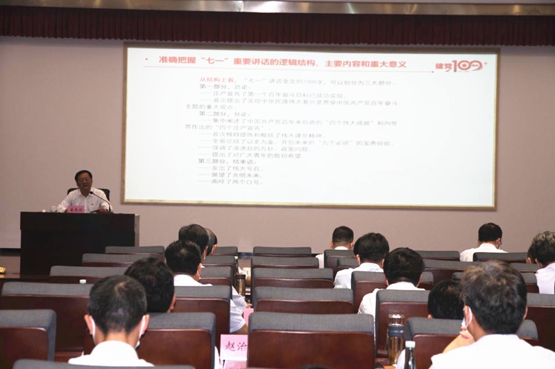 8月3日下午,集團(tuán)舉辦學(xué)習(xí)貫徹習(xí)近平總書記“七一”重要講話精神宣講報(bào)告會(huì),省屬企業(yè)宣講團(tuán)成員、集團(tuán)黨委書記、董事長(zhǎng)姜長(zhǎng)興作宣講。集團(tuán)部分領(lǐng)導(dǎo)班子成員出席會(huì)議,集團(tuán)外部董事、高管、機(jī)關(guān)全體人員,各權(quán)屬單位領(lǐng)導(dǎo)班子成員參加會(huì)議。