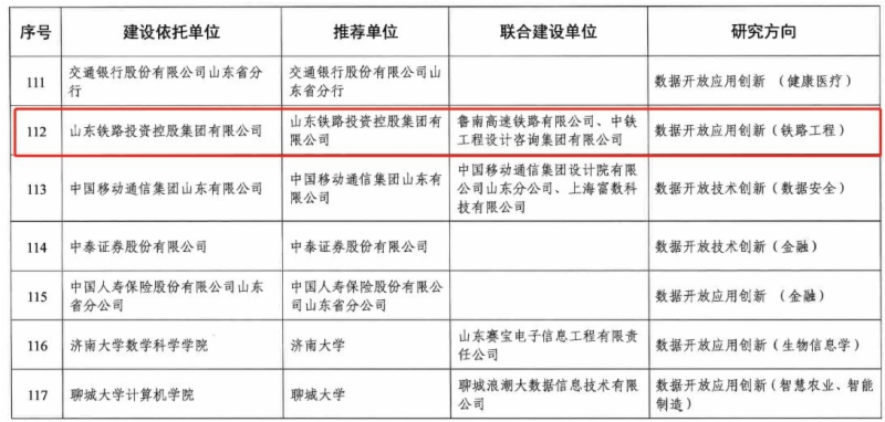 近日,山東省大數(shù)據(jù)局公布了《山東省數(shù)據(jù)開放創(chuàng)新應(yīng)用實驗室(第三批)名單》,集團申報的“鐵路工程大數(shù)據(jù)研究實驗室”成功獲批。