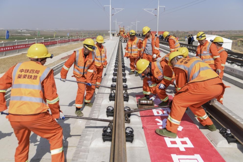 萊榮高鐵正線長度 192.814km,其中鋪設(shè)無砟軌道地段 180.999km。自2022年3月下旬無砟軌道工程全面轉(zhuǎn)入線上施工以來,萊榮高鐵公司充分發(fā)揮黨建引領(lǐng)作用,精心組織,細化安排,充分優(yōu)化資源配置,全線高峰時段38個作業(yè)面同時施工,作業(yè)人員高達1500余人。各參建單位齊心協(xié)力克服了工作面多、作業(yè)班組多、施工組織難度大、不良天氣頻發(fā)和疫情防控等不利因素影響,僅用不足400天時間順利完成全線無砟軌道施工任務(wù)。目前萊榮高鐵鋪軌已完成近半,計劃6月初完成鋼軌放散鎖定,7月初開始聯(lián)調(diào)聯(lián)試,10月底具備開通運營條件。