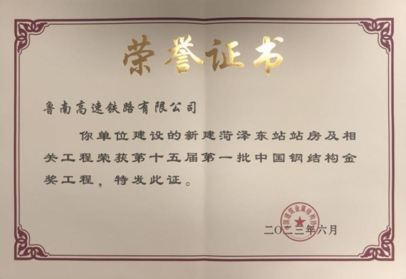 近日,魯南高鐵菏澤東站,榮獲“第十五屆第一批中國(guó)鋼結(jié)構(gòu)金獎(jiǎng)”。