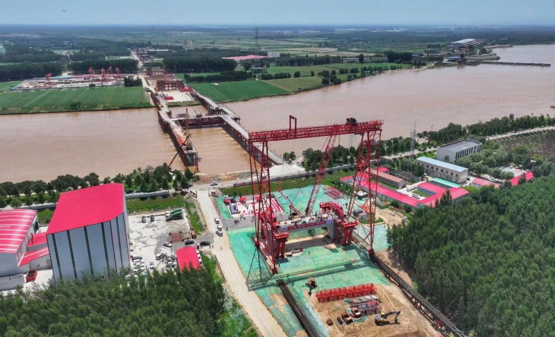 當前,黃河已進入主汛期,且正值上游小浪底水庫調(diào)水調(diào)沙,橋位處水位高、流速大,最大流量超3900立方米/秒。在鋼梁架設(shè)過程中,面對汛期對現(xiàn)場施工管理的影響,參建單位努力克服高溫天氣、施工空間有限、施工工藝復(fù)雜等難點,現(xiàn)場通過智能監(jiān)控、自動預(yù)警及數(shù)字化控制,實時監(jiān)測主梁拼裝線型、輔助設(shè)施受力和大型起吊設(shè)備安全狀態(tài),實現(xiàn)鋼梁精準、安全、高效吊裝架設(shè)。